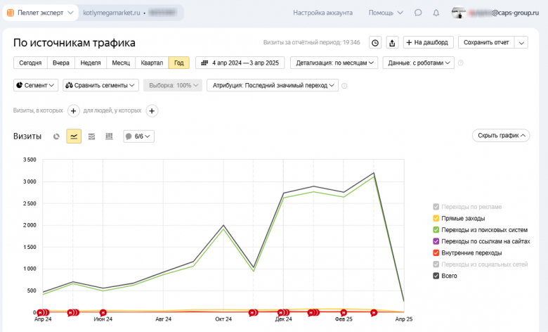 Посещаесть сайта по данным сервиса Яндекс.Метрика